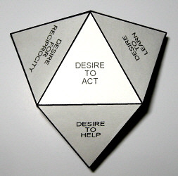 The triangles at the top of the "crown" represent various desires associated with action (Desires of Action), which I appropriately subdivide into the following: